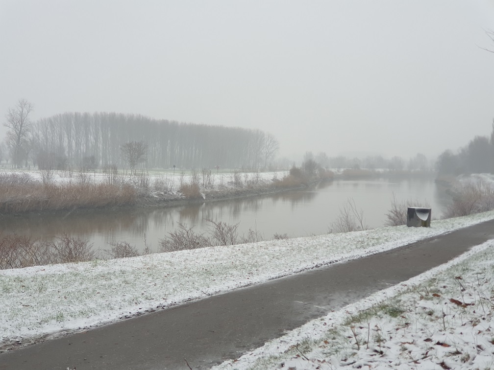 ijs op de plassen alleen het voetpad is wit knisperend strooizout
